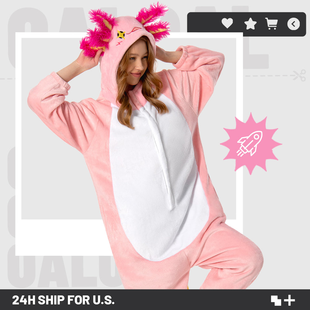 The cute and striking dinosaur animal onesies are designed with a hat that features fierce eyes, lovely teeth, pink blush and a long 3D tail in the back, which can achieve realistic effects. It will leave some unforgettable memories and interesting photos for your cosplay party