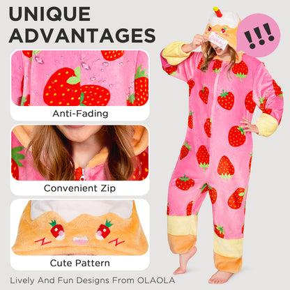 OLAOLA Strawberry Cake Pajamas Food Onesie Plush Warm Home One Piece For Adult Unisex Halloween Costume